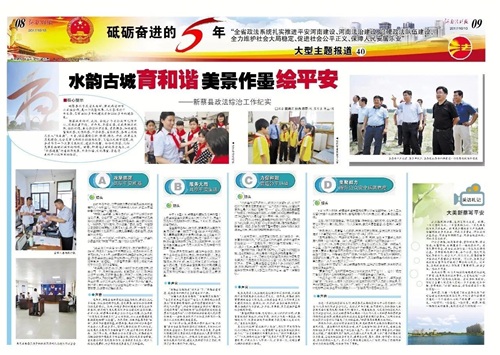 行走在新蔡,闻花草芳香,赏绿树成荫、碧波荡漾、白鹭惊鸿,仿佛置身于一幅水墨画中。亮丽风景的背后,是全县政法综治工作巨大成绩的凸显。在新蔡的大街小巷,各个公园,随处可见有关平安出行、安全生产、防火防盗、禁毒禁赌等方面的浅显易懂的宣传标语。可以说,该县真正地把政法宣传工作做到了群众的心坎上。近年来,该县政法综治工作取得了累累硕果,政法宣传工作功不可没。