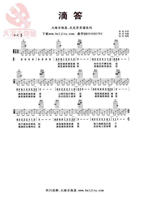 简单版的滴答,可以随意弹点旋律作为前奏,注意右手力道强弱,唱歌的调子可以用变调夹改变。