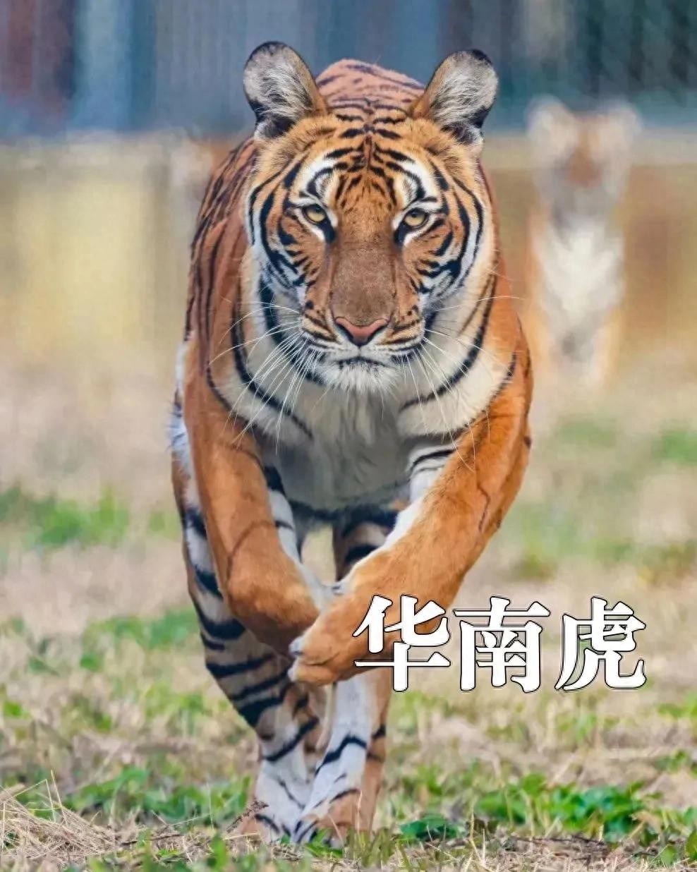 经查阅相关资料,华南虎是中国独有的虎,体大雄健,凶猛威严,毛色斑斓鲜艳,是国家一级重点保护野生动物,其主要特征:在现代虎亚种中体型较小,体重170-190千克,体长1.6-2.9米;头圆而大,耳朵短且圆,耳背黑色,额部黑纹四道,前三条中间通连,眼大,眼上方一白色区内有3条黑纹,鼻直,颊白色;毛较短,毛色较东北虎深,浓而艳丽,呈橘黄色甚至略带赤色,全身布满黑色横纹,斑纹黑而宽,条纹既短又窄,条纹间距较孟加拉虎、东北虎的大,体侧常出现由条纹交汇而成的菱形纹,颈粗短,胸、腹为乳白色;四肢强壮有力,外侧橘黄,内侧乳白;尾较长,腹面为白色,具有约9个黑环,尾尖黑色。