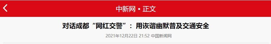 环球网——《对话成都“网红交警”:用诙谐幽默普及交通安全》——2021-12-22