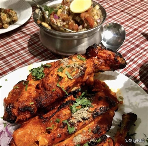 03、印度烤鸡,通常采用酸奶腌制和添加丰富香料等方式,使其肉质嫩滑、口感浓郁。