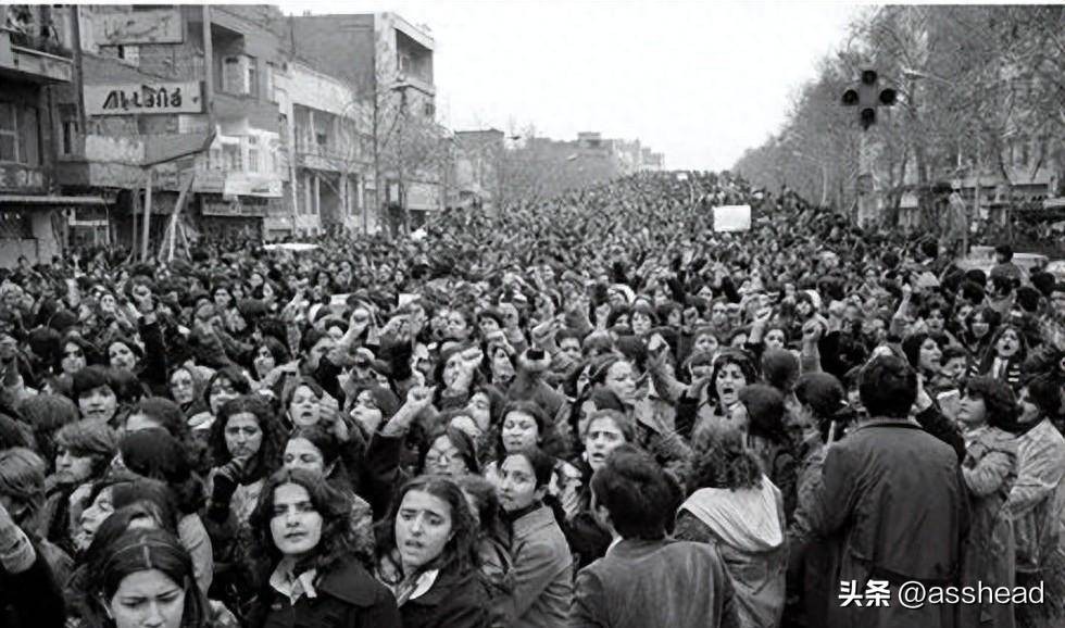 12、1979年伊朗革命后,女性被强迫戴头巾,当地妇女对此作出抗议。
