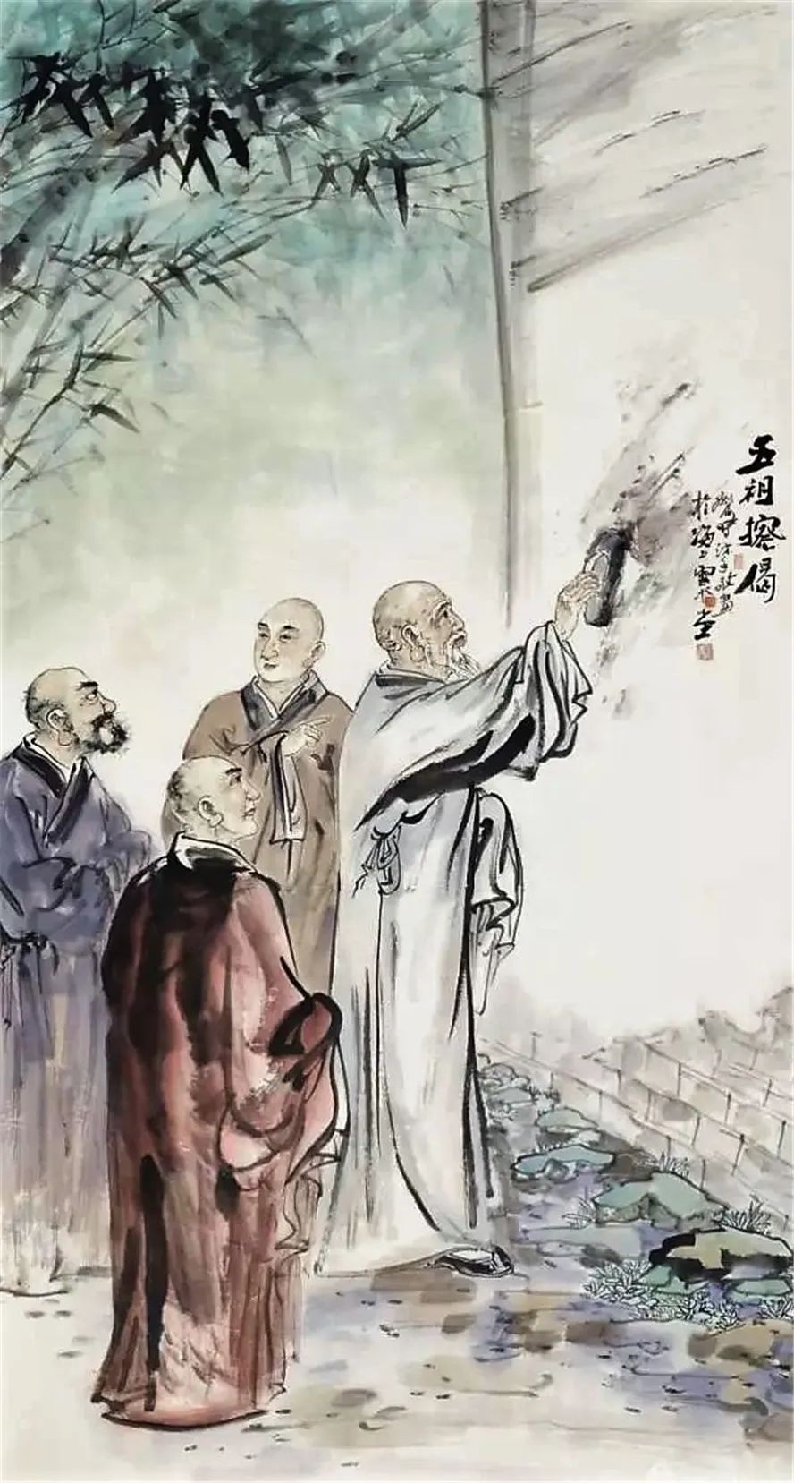 有了偈以后,神秀还是底气不足,他来到五祖的房间犹犹豫豫,左摇右摆,呈上去?然后又退缩了;呈上去?又缩了回来,搞了十三次之多。他心里压力太大了,害怕不被五祖认可。终于他还是怂了,退了回去。他想了一个智慧的方法,准备将偈写到南壁走廊去,那里有一块新刷的墙,准备用来画禅宗血脉图的。