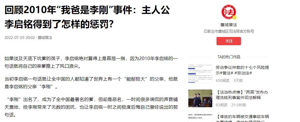 藁城普法:《回顾2010年“我爸是李刚"事件:主人公李启铭得到了怎样的惩罚?》