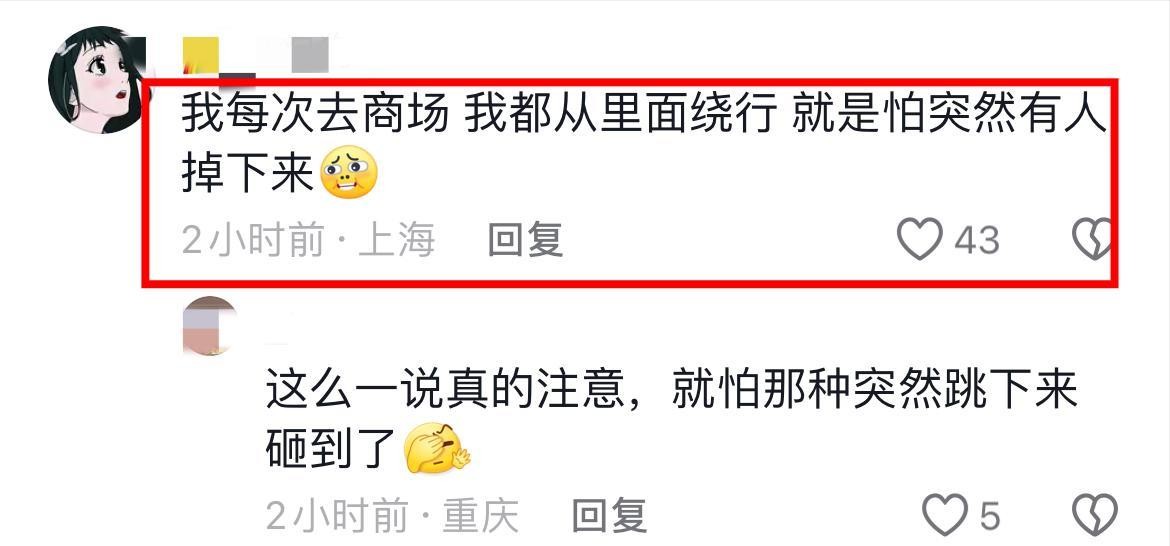 对于这位网友的说法,有的网友表示,这其实已经不是该商场第一次发生这样的事件,因为早在去年的时候,就已经有人在这里坠亡。