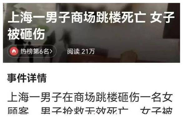 悲痛!上海男子商场内坠楼身亡,目击者:人跳到我边上,细节曝出
