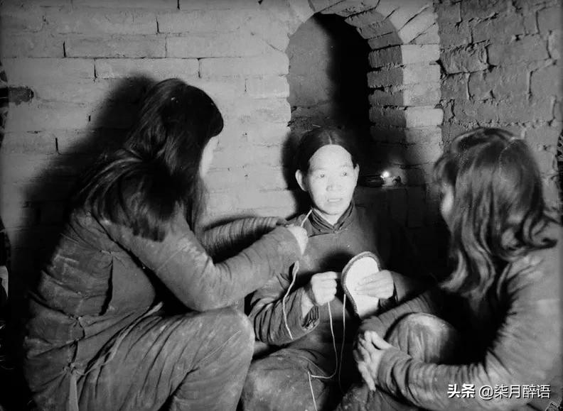1943年,在地道里纳鞋底的冀中妇女
