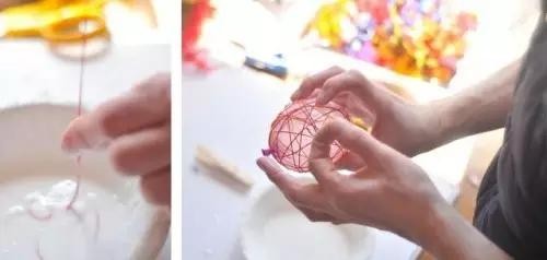 1.先吹一个小气球,毛线粘上固定形状的胶水或浆料后缠绕在小气球上,剩下的就是一个等毛线干的过程。