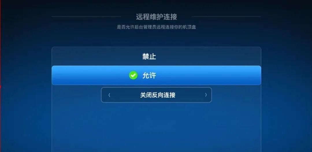 将“远程维护连接”选项切换到允许状态。电脑连接家里的路由器,和盒子保持在同一局域网下面。