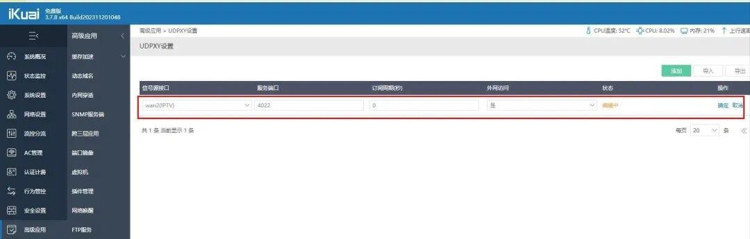 在路由器里开启udpxy 功能,端口设置4022.当然也可以自己改个自己喜欢的数字。