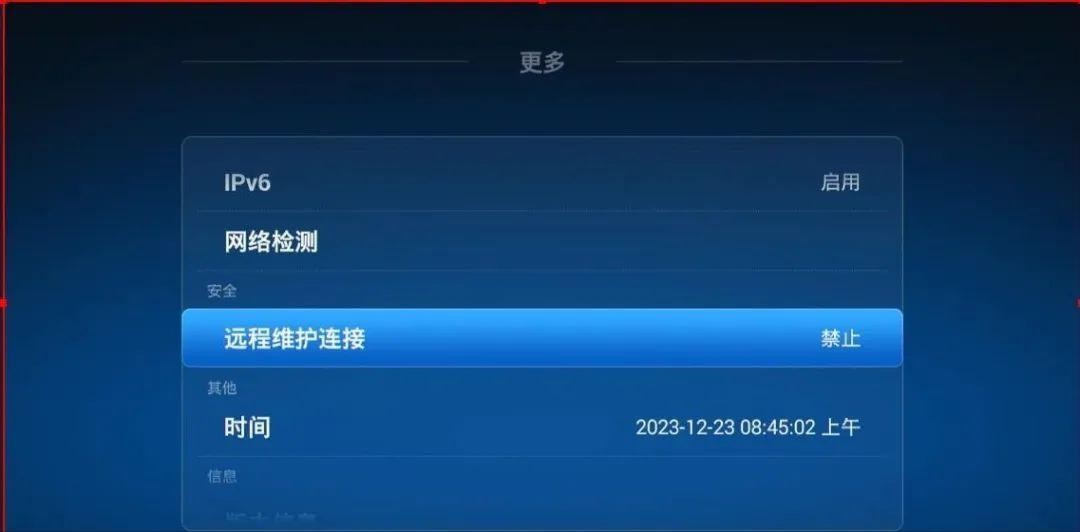 按遥控器下键,找到“远程维护连接”选项,然后点进去。