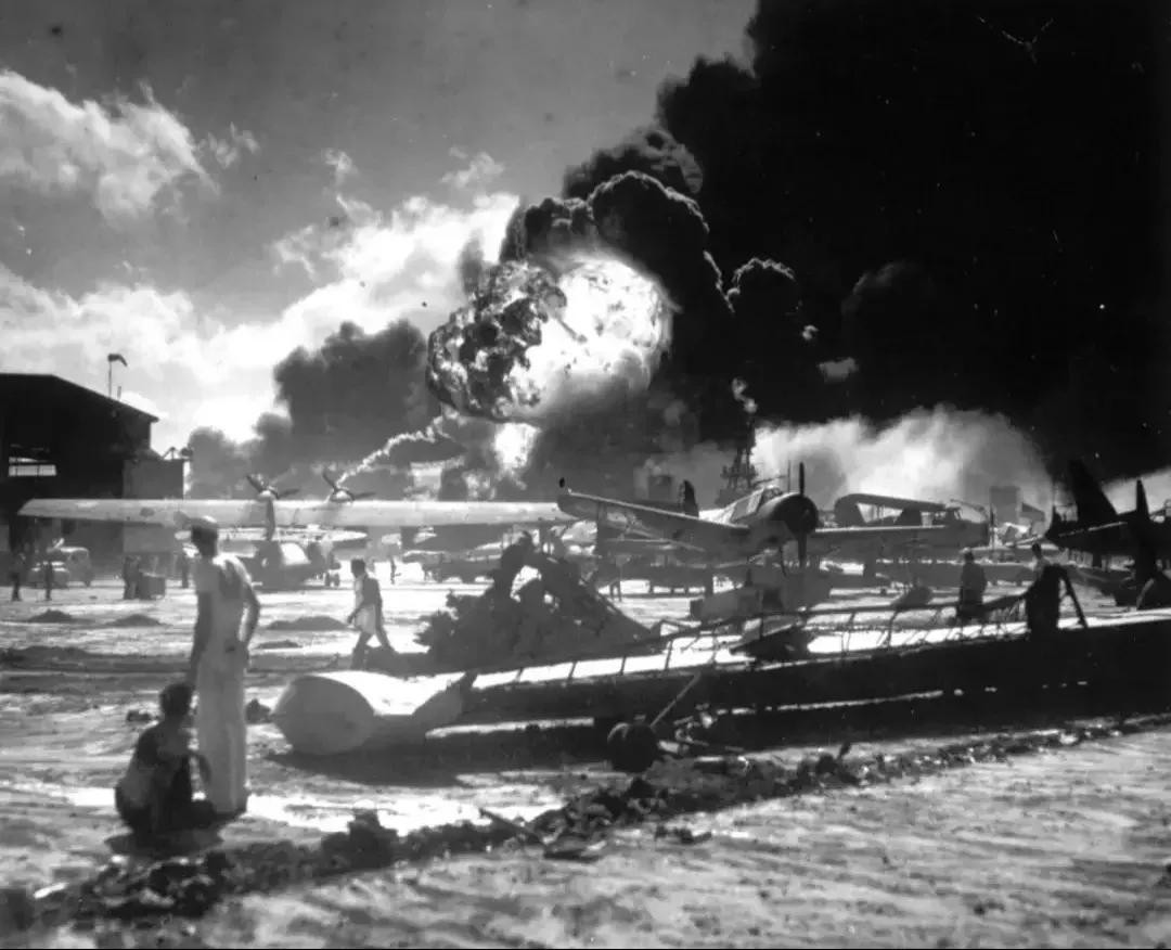 当日清晨7时许,珍珠港内的美国舰队受到由183架飞机组成的首批攻击机群的猛烈轰炸。第二次攻击在1小时后到来,日军再次出动191架飞机编队,对美国舰队进行了毁灭性的打击。