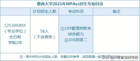 2021暨南大学会计专硕,计划统招(不含推免)全日制会计硕士58人,学制2年,学费3.5万/年。
