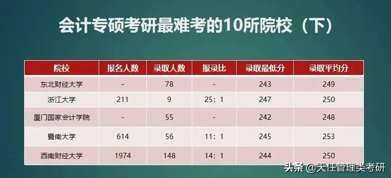 浙大会计专硕难度仅次于北大和人大,录取人数也很少。245分以下的考上基本没希望。