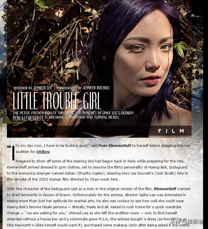 她在好莱坞第一部参演的电影是美版《老男孩》,她在里面饰演的是反派BOSS的秘书+打手。