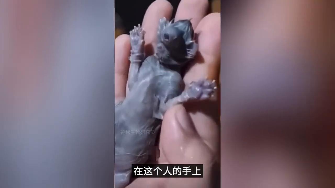 一只只有一个眼球,长得像老鼠的怪异生物。在这个人的手上,它全身灰色,但嘴巴位置似乎有胡须,看起来又像是一只猫。