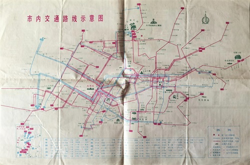 下图为1984年沈阳测绘局出版沈阳交通示意图。