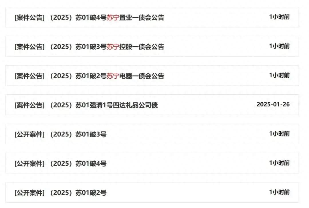 苏宁破产案件公告列表