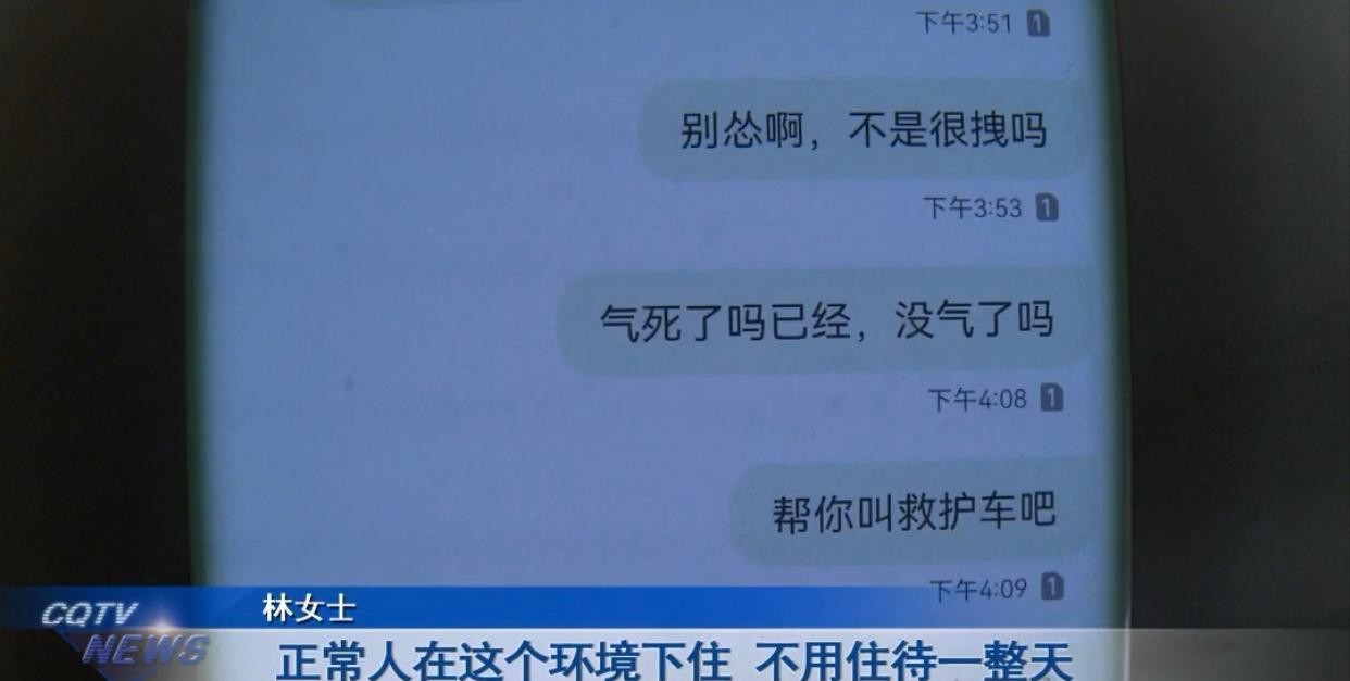和当初完全相反,现在变成了楼下住户一言不发,就静静的看着林女士攻击和辱骂。尽管林女士一再用短信挑衅对方,但是对方始终不发一语。