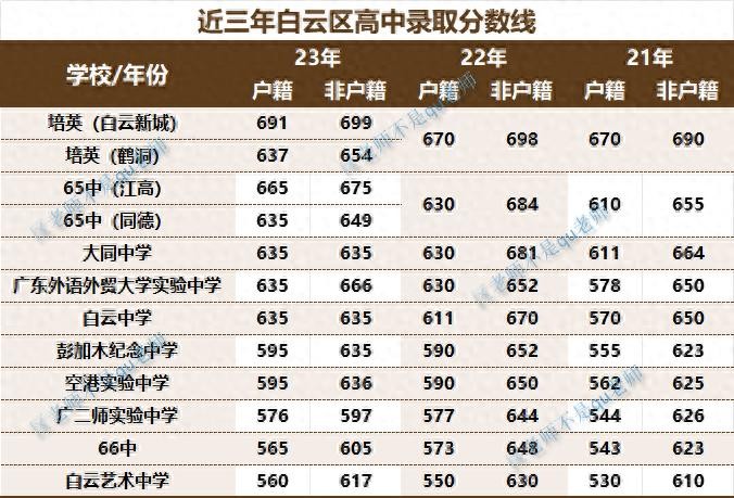 这时候,你们先看看白云区区属高中的录取分数线,白云区的家长可以收藏图片,往后大概是会频繁用到。