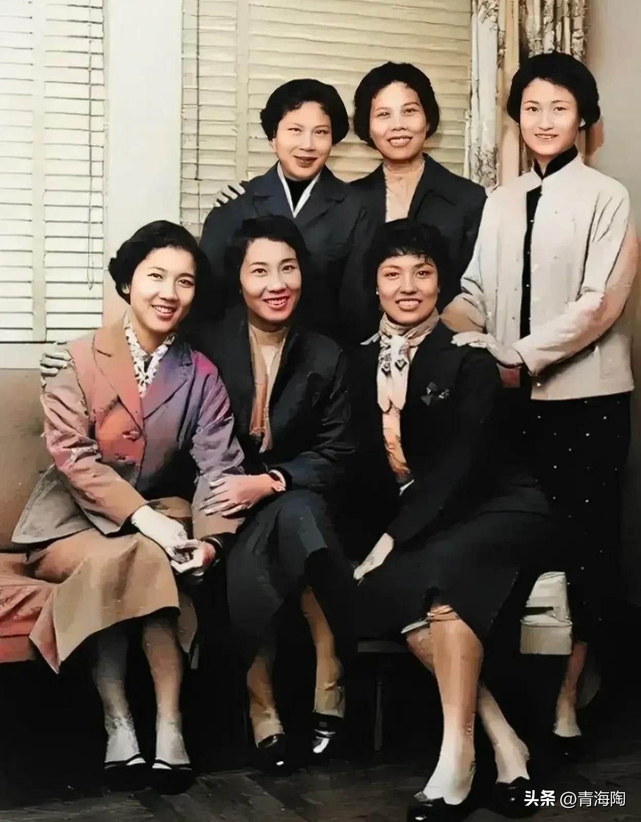 王文娟与她的越剧姐妹们,前排左起:吕瑞英、袁雪芬、金采风;后排为徐玉兰、张桂凤、王文娟