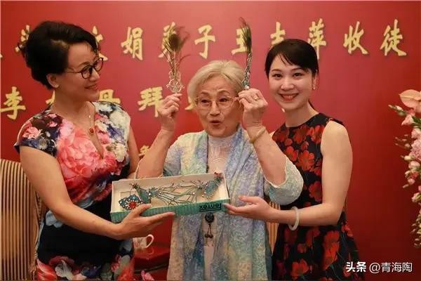 左一为越剧协会会长张梧、中为时年80岁的王文娟、右为上海越剧院院长尤伯鑫