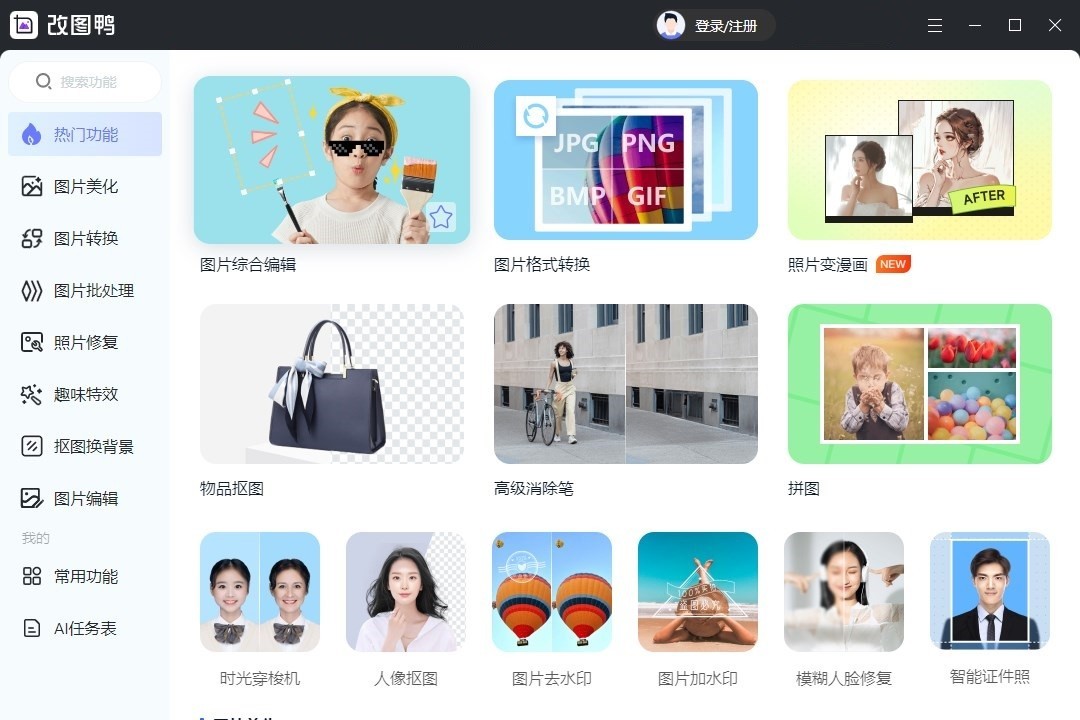 别光看名字就小瞧它,除了主打的图片格式转换外还具备图片压缩、图片编辑、拼图抠图、趣玩图片等多样化功能,批量处理也不在话下,让图片处理更高效!