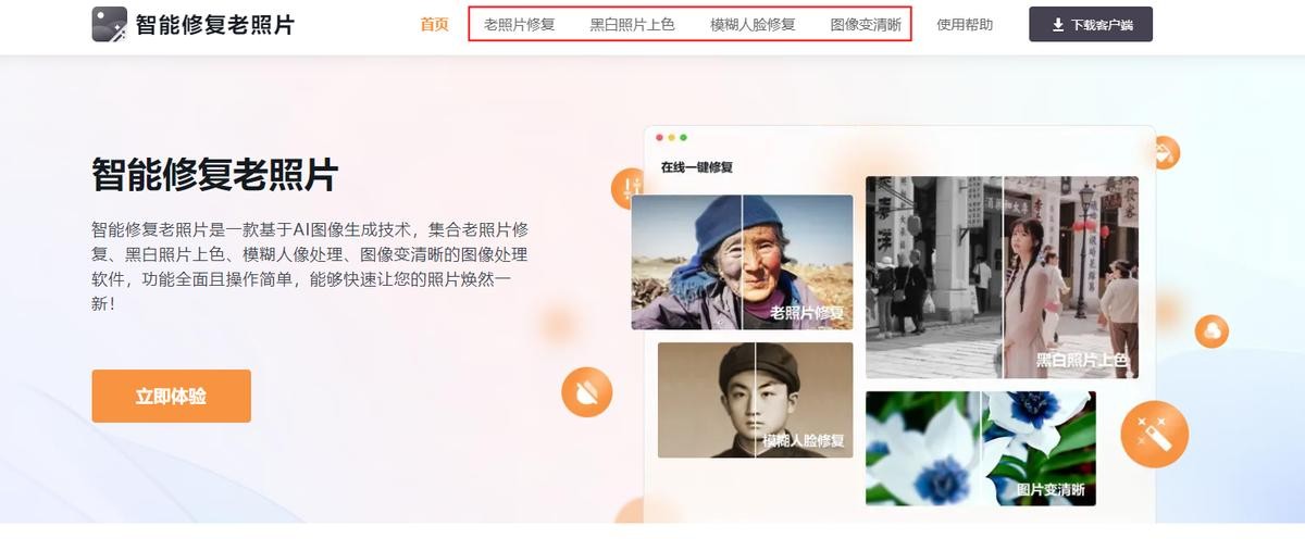 一款基于AI图像生成技术,集合了老照片修复、黑白照片上色、模糊人脸修复和图像变清晰功能的图片处理网站,操作简单,能快速让照片焕发新生。