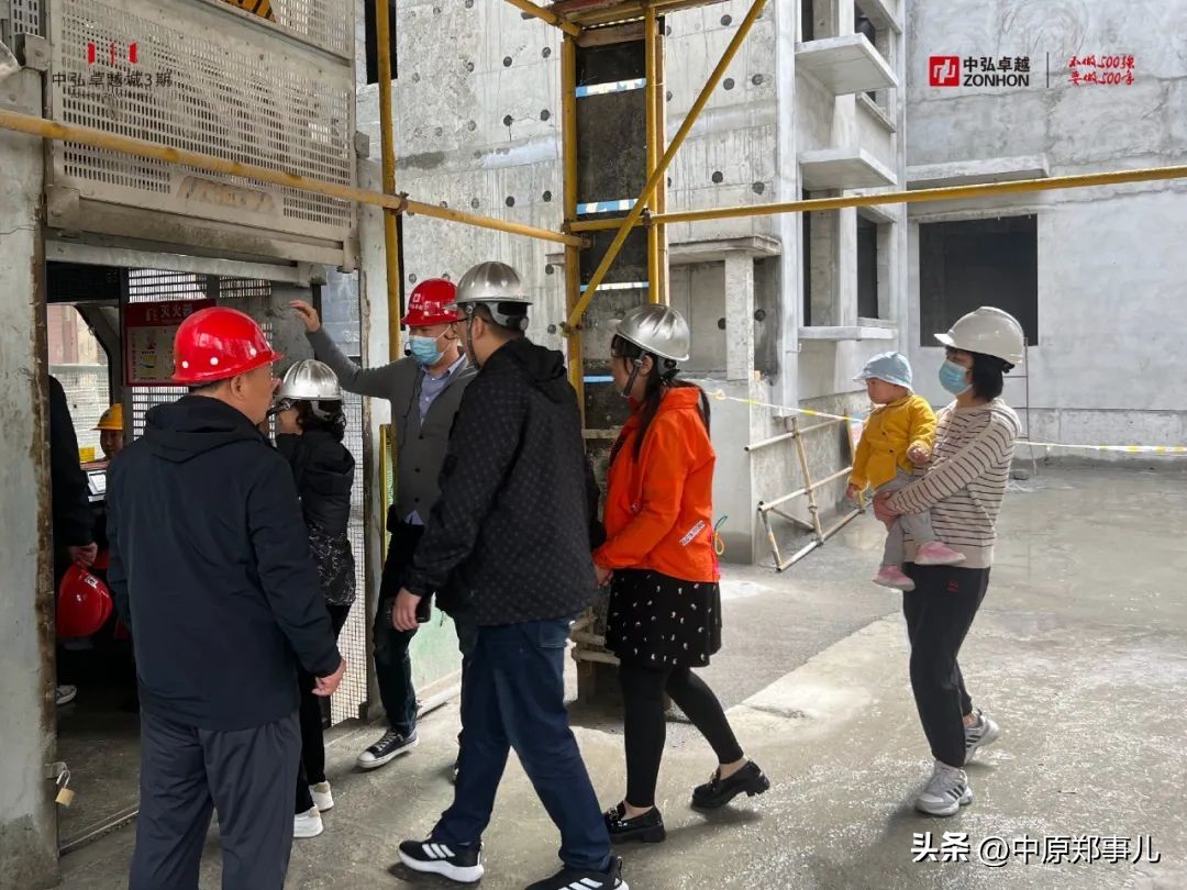 5 月 7 日上午,中弘卓越城三期幸福交付计划迎来第三季活动。中弘卓越城新老业主一行亲临工地现场,在项目工程师的陪同下,共同参与了中弘卓越城三期的品质检阅之旅。