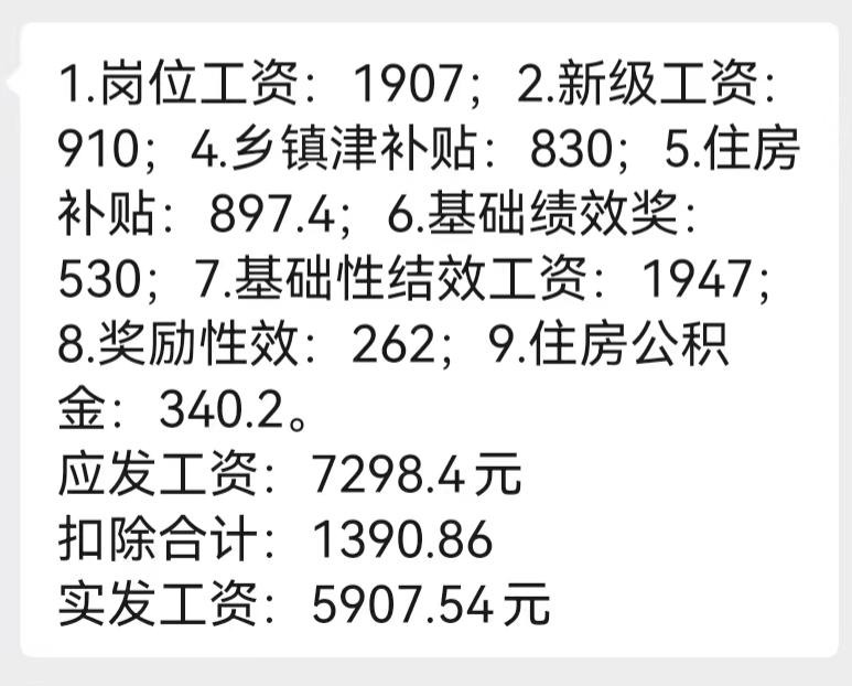 每月工资到手5000元左右;公积金1000元;取暖费2660元每年;班主任补贴400元;年终奖12000元。