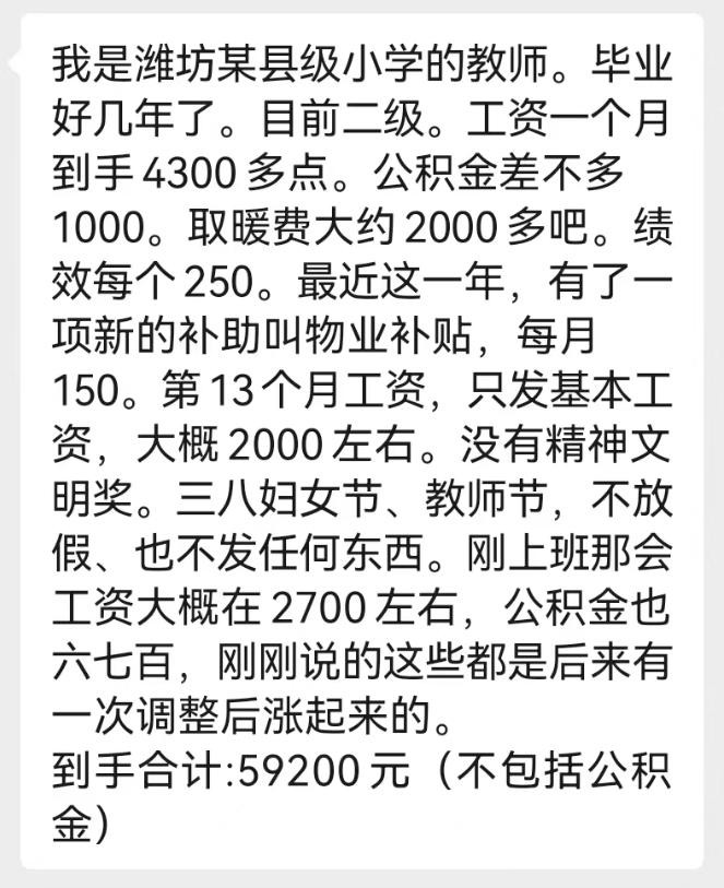 最近,潍坊多所中小学老师晒了自己的年收入情况。