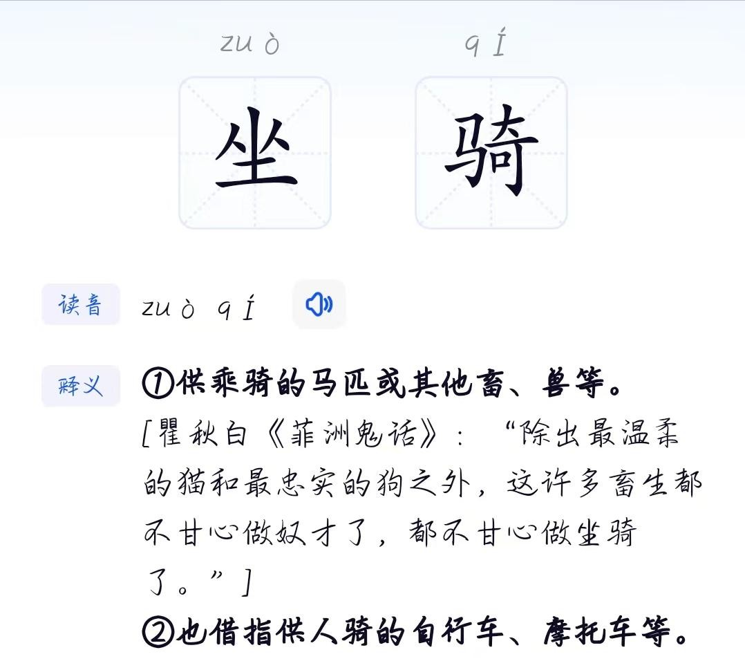 “坐骑”的“骑”,我们大多数人会读成“ji”,可实际上,它的发音却是“qi”