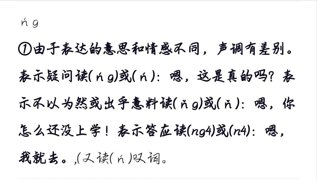 第三个读音为“ňg”,表示不以为然或者出乎意料的意思。