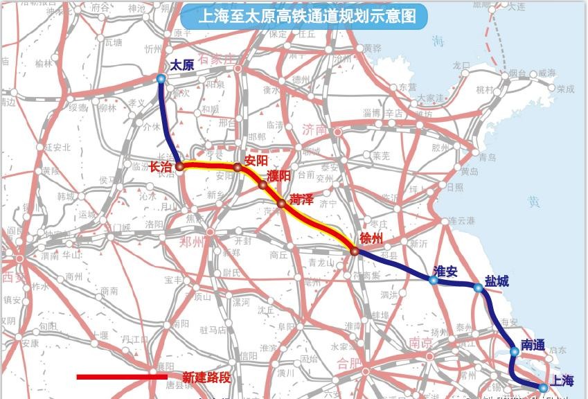 河南则积极从国家总体规划和区域性规划这两方面积极着手,争取多条高铁纳入规划规划。在国家总体规划方面,积极争取4条高铁纳入国家规划。其中,最值得关注的是沪太高铁通道,涉及河南的路段是长治-安阳-濮阳-菏泽段,这段高铁成为了河南重点谋划的铁路项目,沿线城市已经召开了共同推进会,均在积极争取纳入国家规划。该高铁利好豫北地区,有助于形成直达长三角的高速铁路通道。