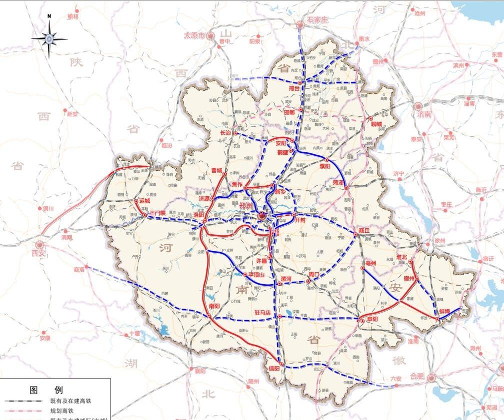 河南在建高铁仅2条、即将开工建设3条,全力实现“市市通350高铁”!目前,河南已经形成了以郑州为中心的高铁网,郑州成为了全国首个“米”字形高铁枢纽城市,也是全国动车和普速火车通道度最高的城市之一,据不完全统计,郑州5小时高铁旅程可直达123个城市,如果加上换乘车次,这个数据增加到136个,位居全国第一!在建成“米”字形高铁枢纽省份后,河南高铁建设朝着更加均衡合理的方向发展,多条“绕开”郑州的高铁提上了日程。这不仅可以缓解郑州枢纽的通行压力,也可以继续强化河南在全国高铁网中的地位。
