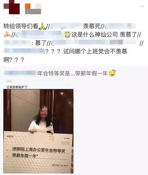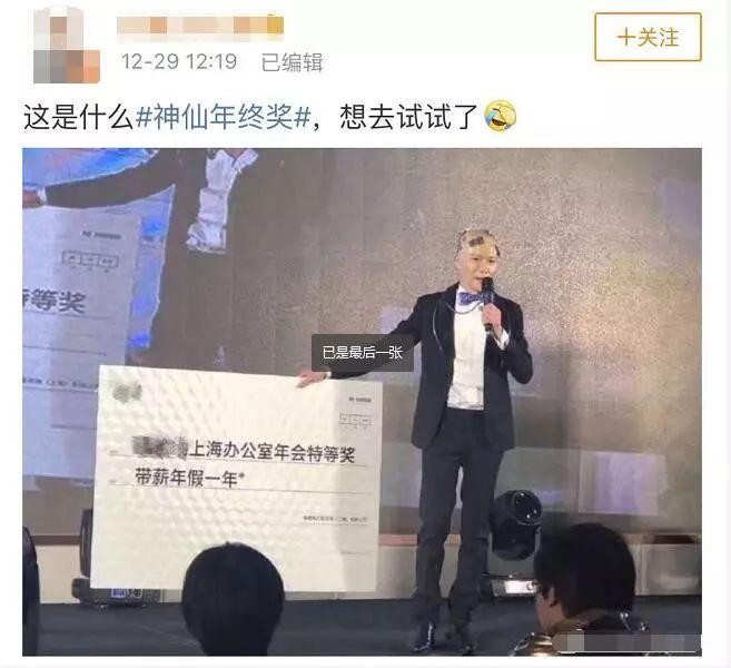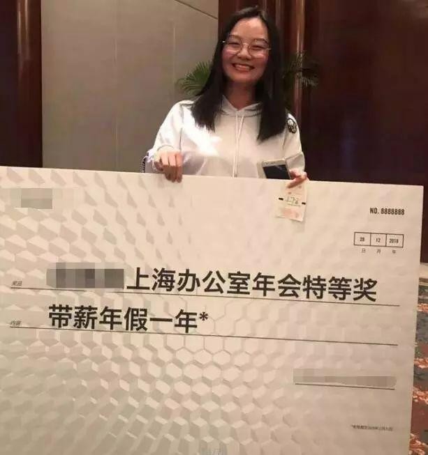 上图就是刷爆网络的年会特等奖:带薪休假一年!