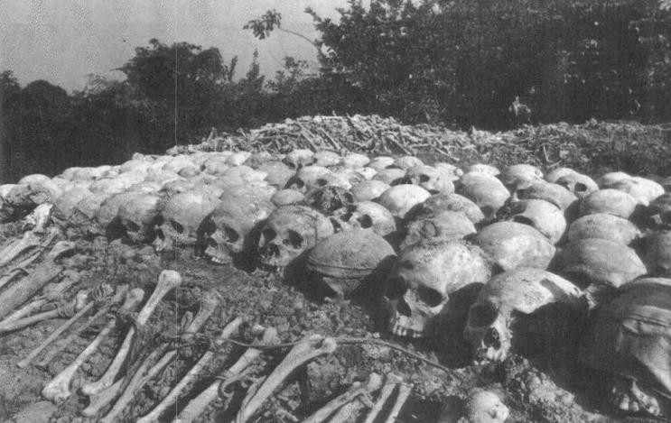 更极端、更惨绝人寰的是,波尔布特还打着“清除反革命力量”的旗号,掀起了一场血腥的大屠杀。