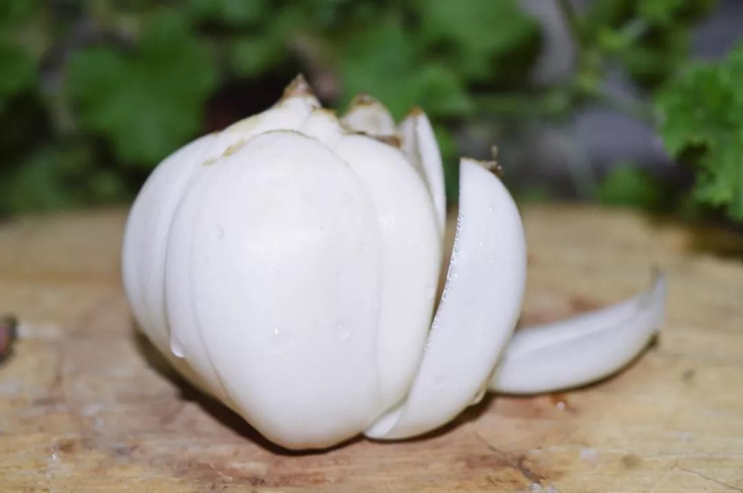 初看鲜百合的外表,猛然觉得像大蒜,其实这种说法早在《本草纲目》便提到过,“其根如大蒜,其味如山薯,故俗称蒜脑薯。”