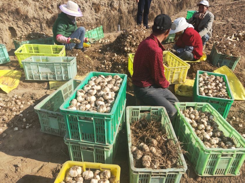 挖出的百合正进行分拣装框
