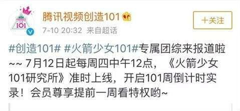 7月11日晚,火箭少女101的官微同时宣布,小姐姐们将参与录制专属团综《火箭少女101研究所》,这档综艺将在每周四播出,这档综艺播完之后,小姐姐们的参演的网剧《少女宿舍》也将开始拍摄。