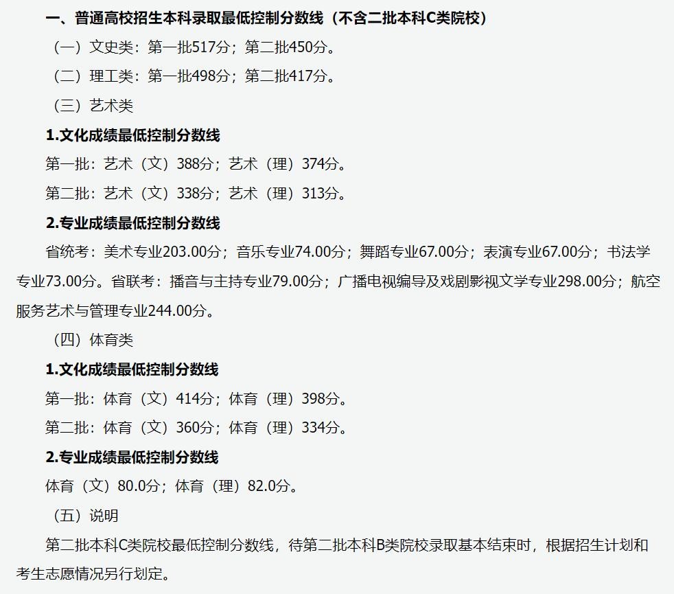 新京报讯(记者杨菲菲)6月24日,山西公布了今年的本科录取最低控制分数线,其中,文史类第一批517分、第二批450分;理工类第一批498分、第二批417分。
