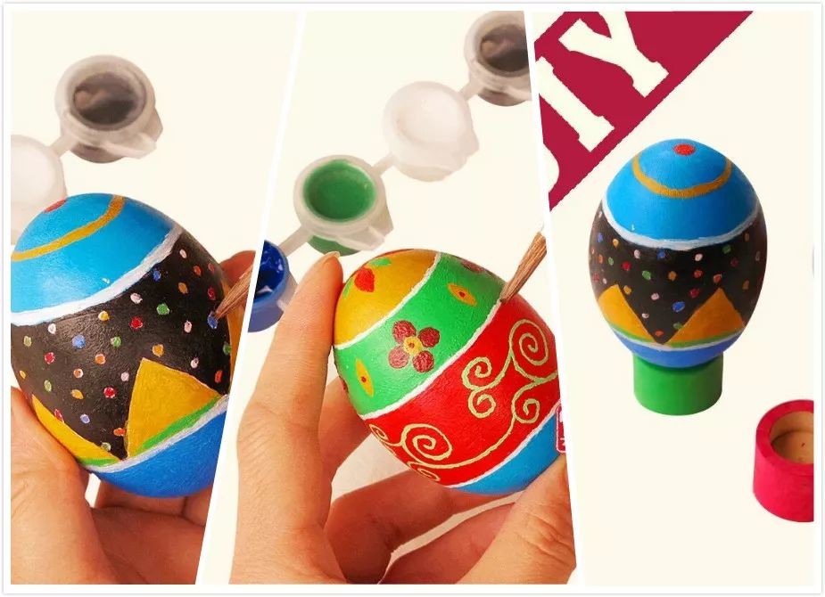 科技辅导教师展示彩蛋成品,现场教学绘制彩蛋的方法,各自进行创意绘画。