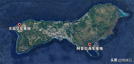 因为关岛的岛形呈长条形,地势南高北低。南部除小部分平原外,都为火山岩山地,海拔为407米;北半部则主要是珊瑚灰岩台地,海拔只有150米左右。这个海拔差距就导致美军当时的海湾工事大多在海岛的北端。而且关岛海岸陡峭,港湾较多,所以在这里设置了很多的造船厂以及大型的防御工事,除此之外,为了预防外敌,美国还在岛上留下了一支水上飞机部队。