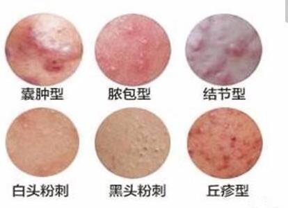 (4)重度:粉刺 炎性丘疹及脓疱,还有结节,囊肿或瘢痕