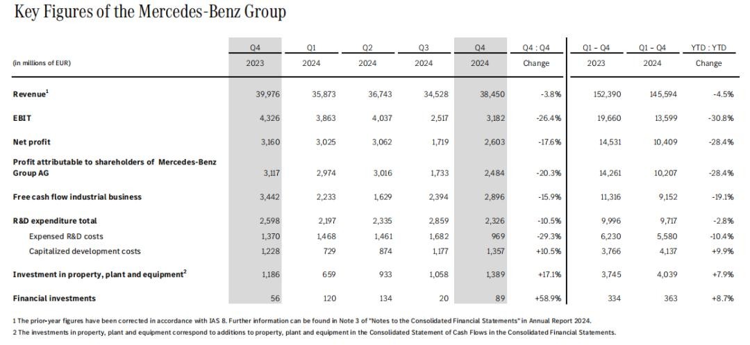 2月20日,梅赛德斯-奔驰集团发布的2024年财报,多项数据引起业界关注。