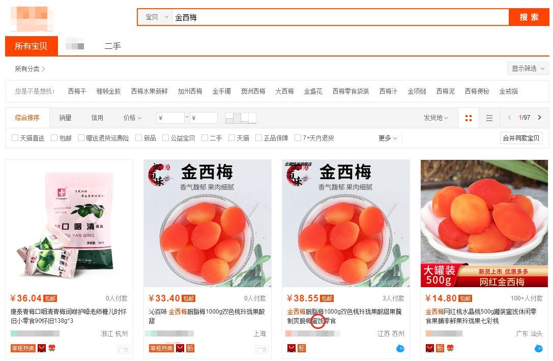 小编在某宝上搜索“金西梅”