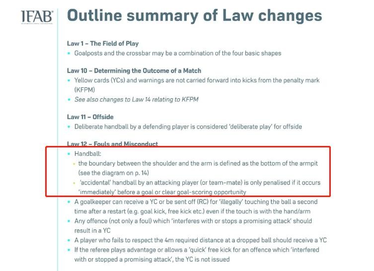 接下来,让我们具体看下本次判罚准则修改中关于手球的描述。