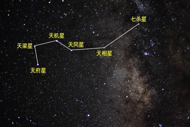 七元指北斗七星。道教称北⽃七星为七元解厄星君,居北⽃七宫。分别是