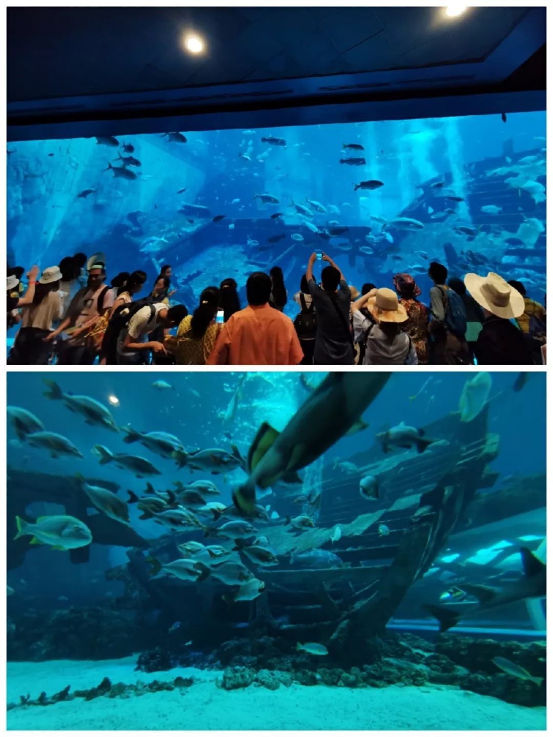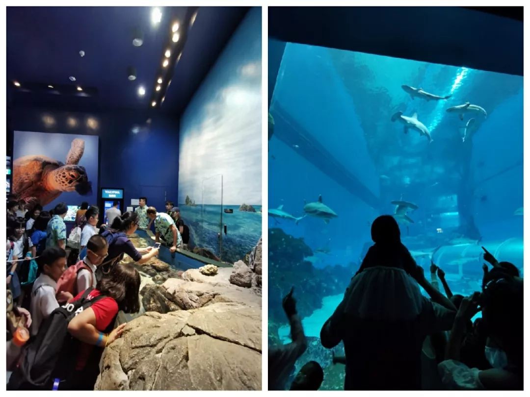 尤其是进场后的鲨鱼和沉船景区,紧接着号称全球最大的观景长廊,还有水母等各色海洋生物,据说新加坡海洋馆的水生物也是利用天然海水进行养殖的。