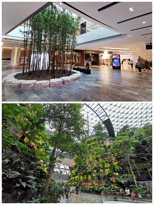 围绕着瀑布的是园林景观,可以坐电梯一直上到顶层,拍照游玩再一圈圈逛下来。里面还有很多商店和餐厅,可以一路逛吃逛吃再安排去登机,我个人觉得在这里玩个三四个小时都没问题,不过注意安排好时间以免延误航班。